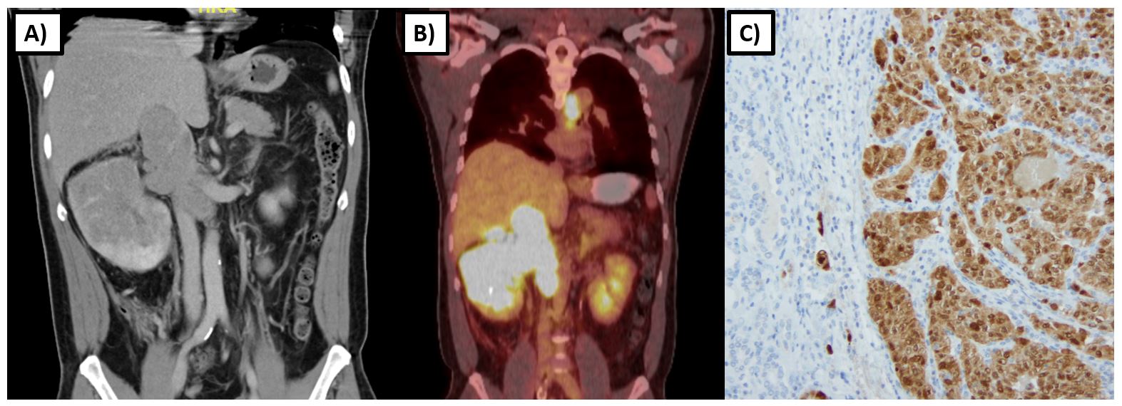 For metastatic SDH-deficient RCC, there is no widely accepted frontline therapy, as evidence is limited to single case series. Much like HLRCC, given the unique metabolic disturbance caused by oncometabolite (succinate) accumulation, VEGF inhibitors are commonly used. One case of widely metastatic RCC of unclassifiable histology with high-grade features was initially treated with sunitinib with a 15-month duration of response, followed by temsirolimus with only a 2-month duration of response, before ultimately being found to be positive for a SDHB mutation. The patient was subsequently treated with pazopanib (a multi-kinase angiogenesis inhibitor) with symptomatic response and stabilization of metastatic disease. However, the patient experienced progression of his cancer 6 months later and ultimately succumbed to the disease. 34 In another report, an individual with SDHC-deficient clear cell RCC who eventually developed widespread metastases not amenable to locally directed therapies was treated with sunitinib and remained on therapy for 34 months with a near-complete response35. In a third case, an individual with a SDHA germline mutation developed a highgrade papillary type 2 RCC with sarcomatoid dedifferentiation that was initially refractory to anti-PD-1 treatment, but later experienced disease stabilization while on a series of VEGF tyrosine kinase inhibitors (sunitinib, pazopanib, and sorafenib)36.