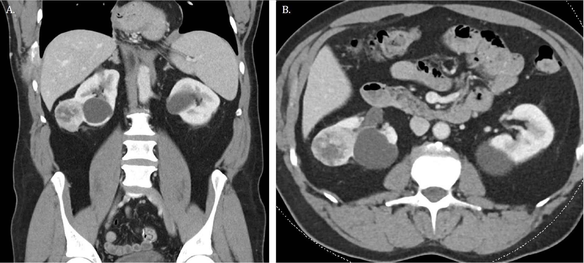 Distinct clinical variables, including performance status, serum hemoglobin, corrected calcium, and serum LDH can segregate patients into risk strata associated with overall survival6. Identifying patients likely to derive benefit from cytoreductive nephrectomy poses a significant clinical challenge. Careful selection of patients for cytoreductive operations based on these prognostic models is key with avoidance of poor risk and debilitated patients unlikely to benefit who are referred instead for upfront systemic therapies7. Cytoreductive radical nephrectomy (cRN) classically involves radical nephrectomy, yet metastatic disease has been reported in 0.5-8% of patients with small renal masses which usually are of high grade with renal sinus, perinephric fat, or branched renal vein extension (T3a)8,9,10. Two published prospective active surveillance series report metastatic rates of tumors <4cm ranging from 0-1.1%11,12. In such patients, the role of cytoreductive partial nephrectomy (cPN) and whether it undermines oncologic efficacy is illdefined. We herein describe cPN in a patient with mRCC, a small renal mass, and pre-existing chronic kidney disease (CKD) and discuss the contemporary experience with cPN.
